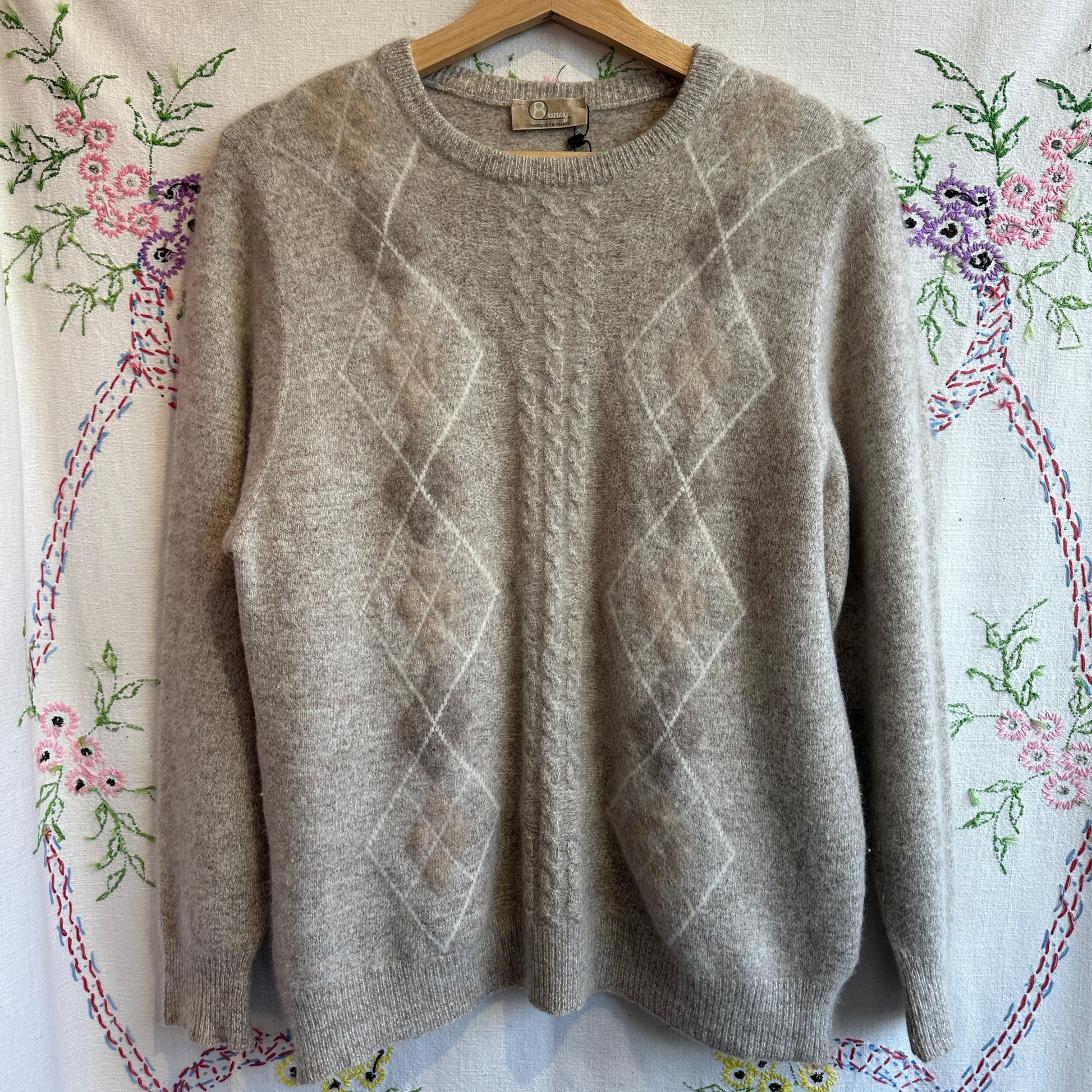 Beige Argyle Wool Blend Sweater, M