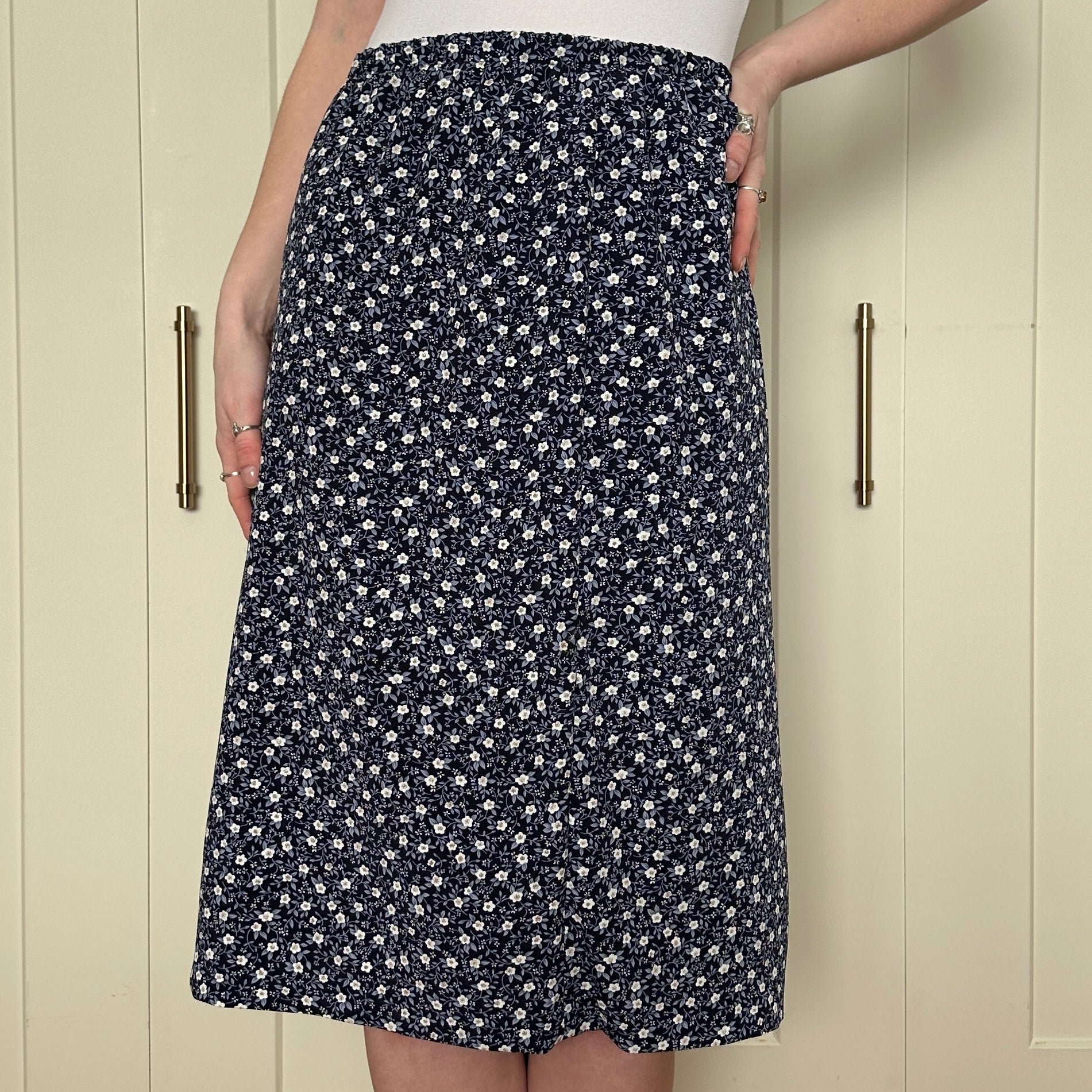 Blue Floral Midi Skirt, M