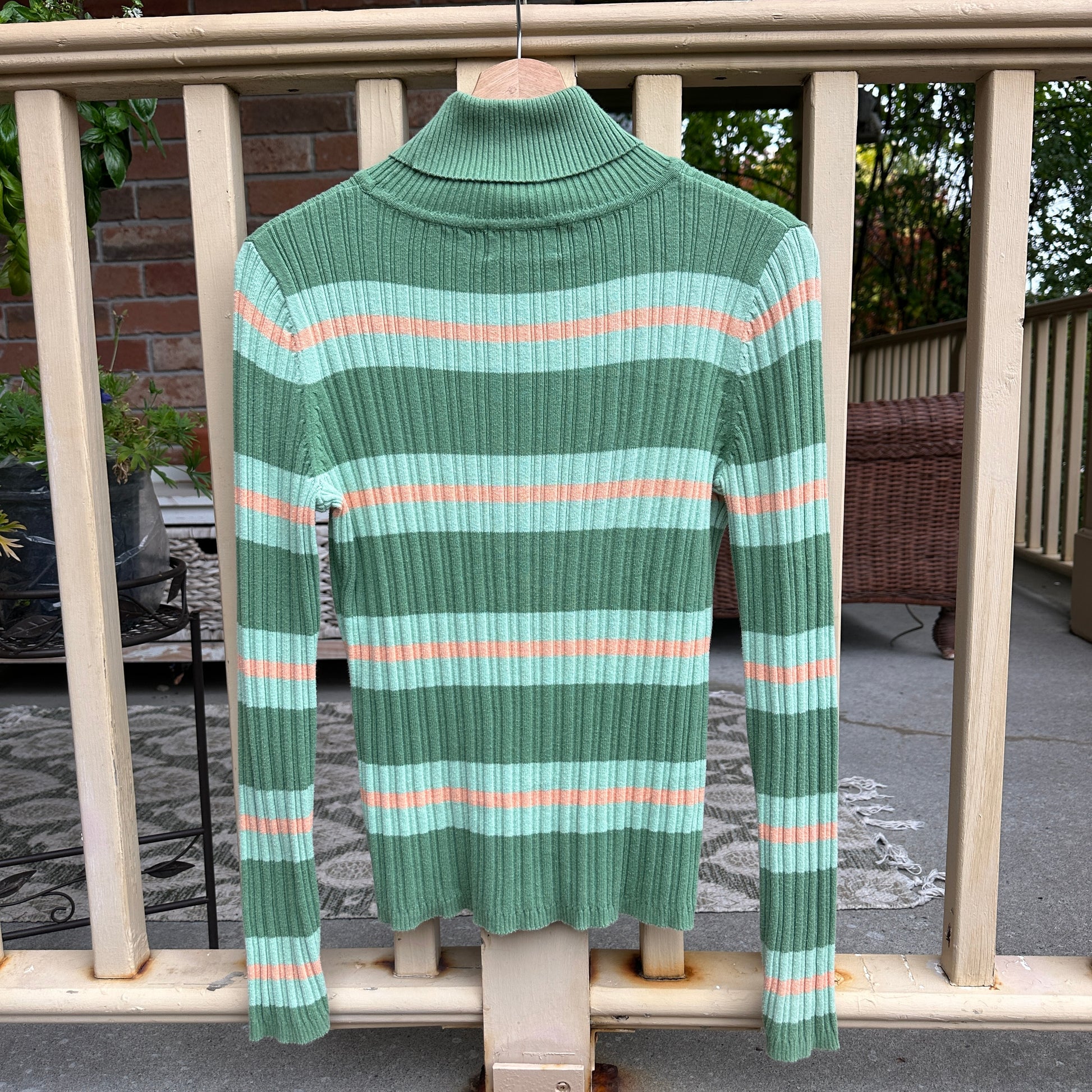 Cherokee Green Ribbed Long Sleeve Turtle Neck, L