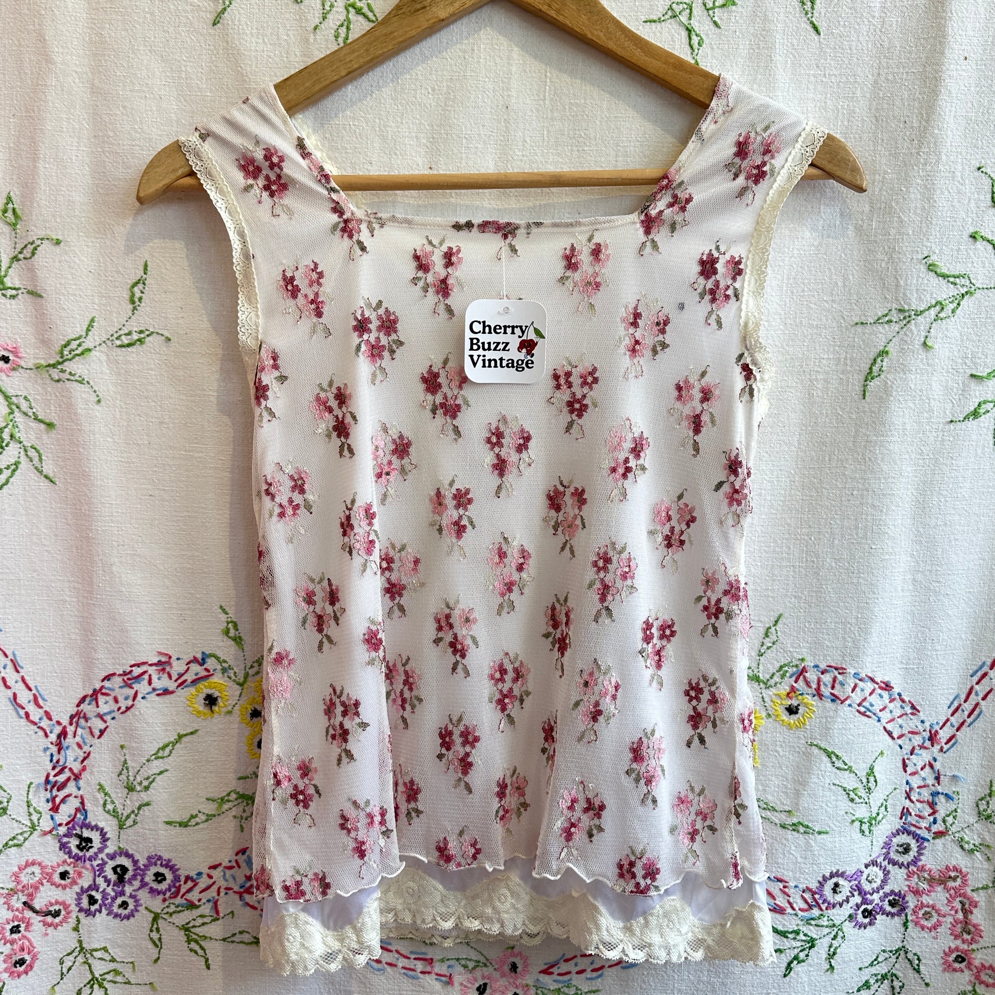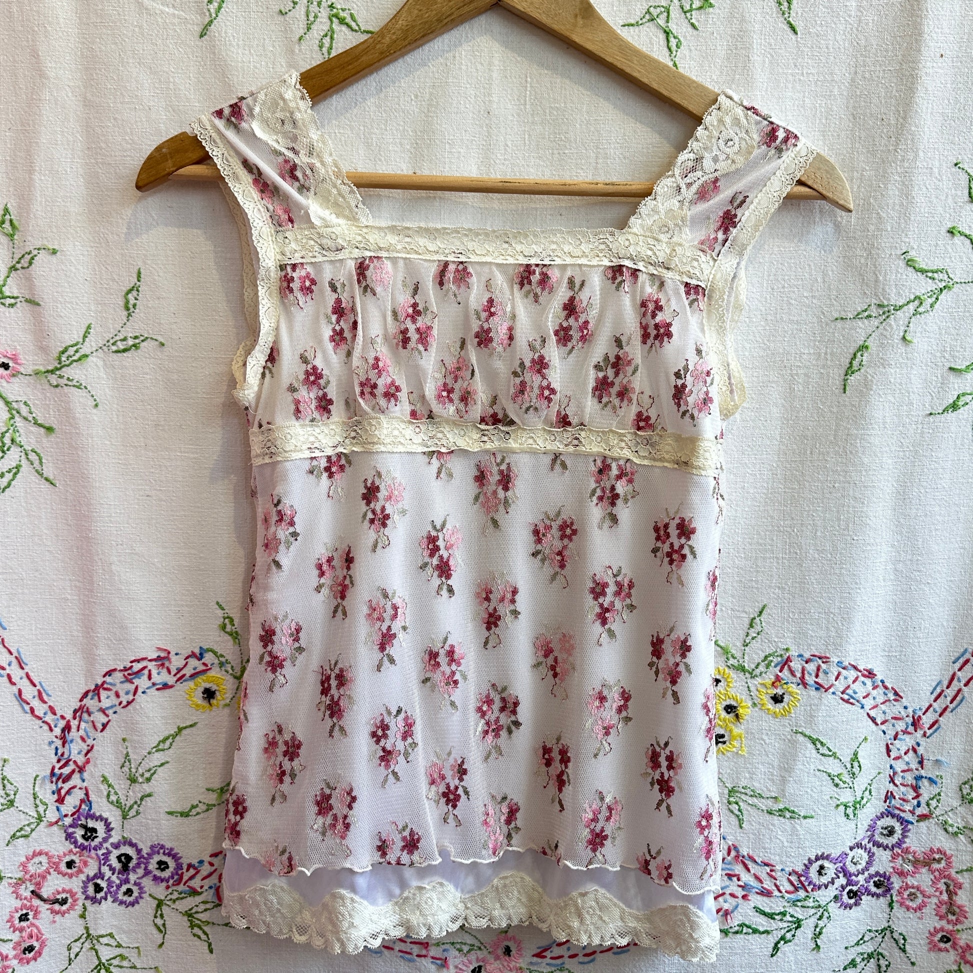 White Lace Floral Top, XS